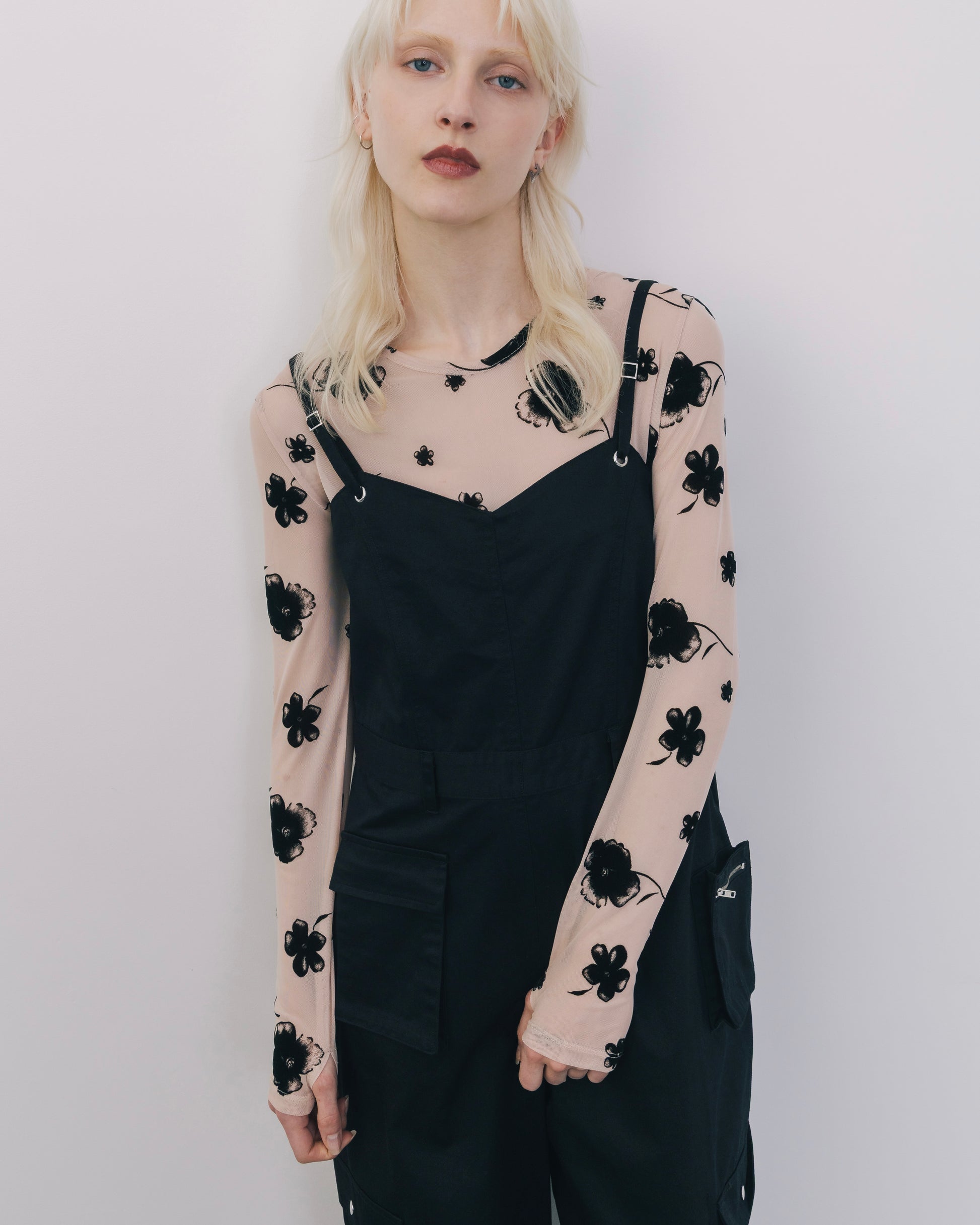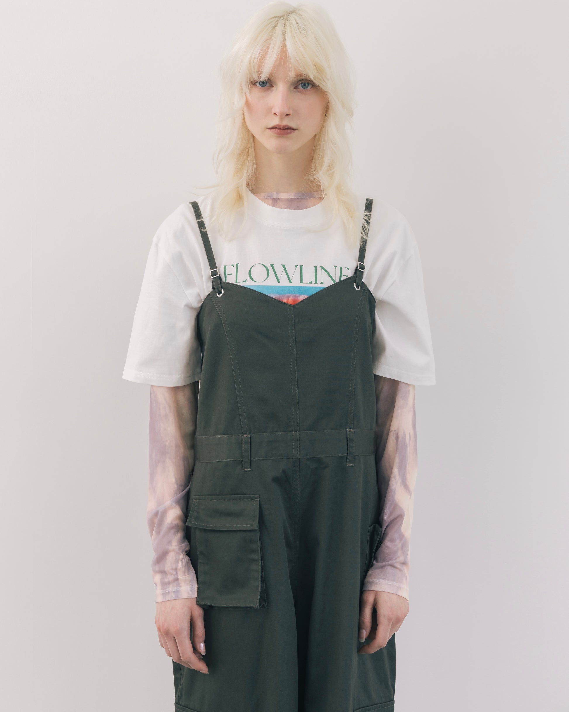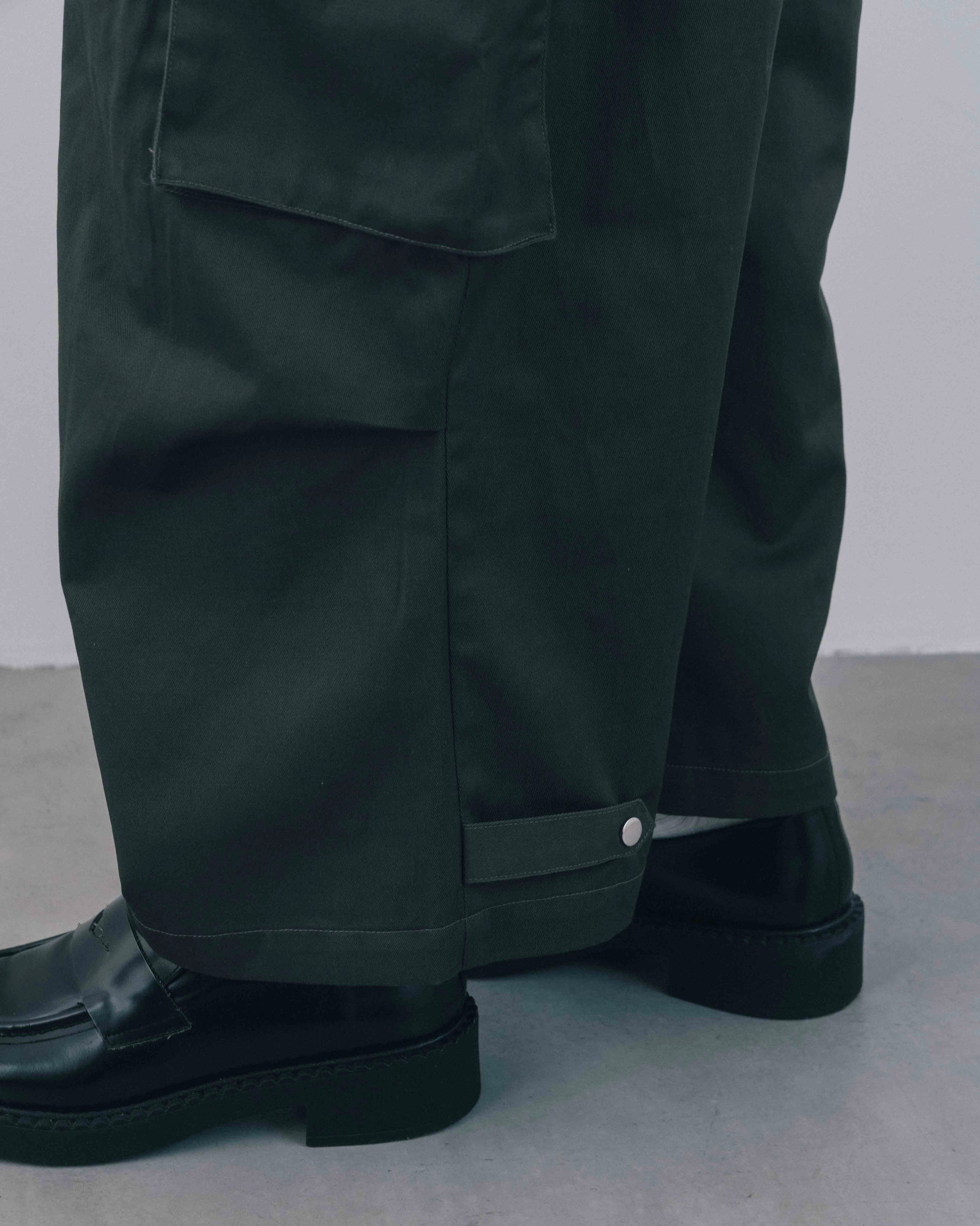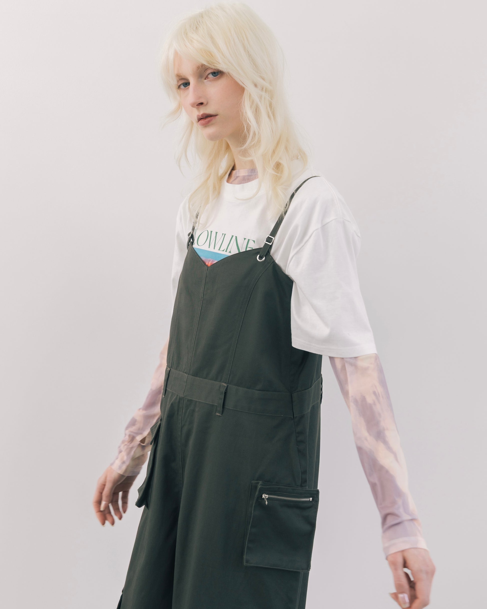 程よくラフな印象を持たせながら、全体的にデザイン性を効かせたカーゴオールインワン。