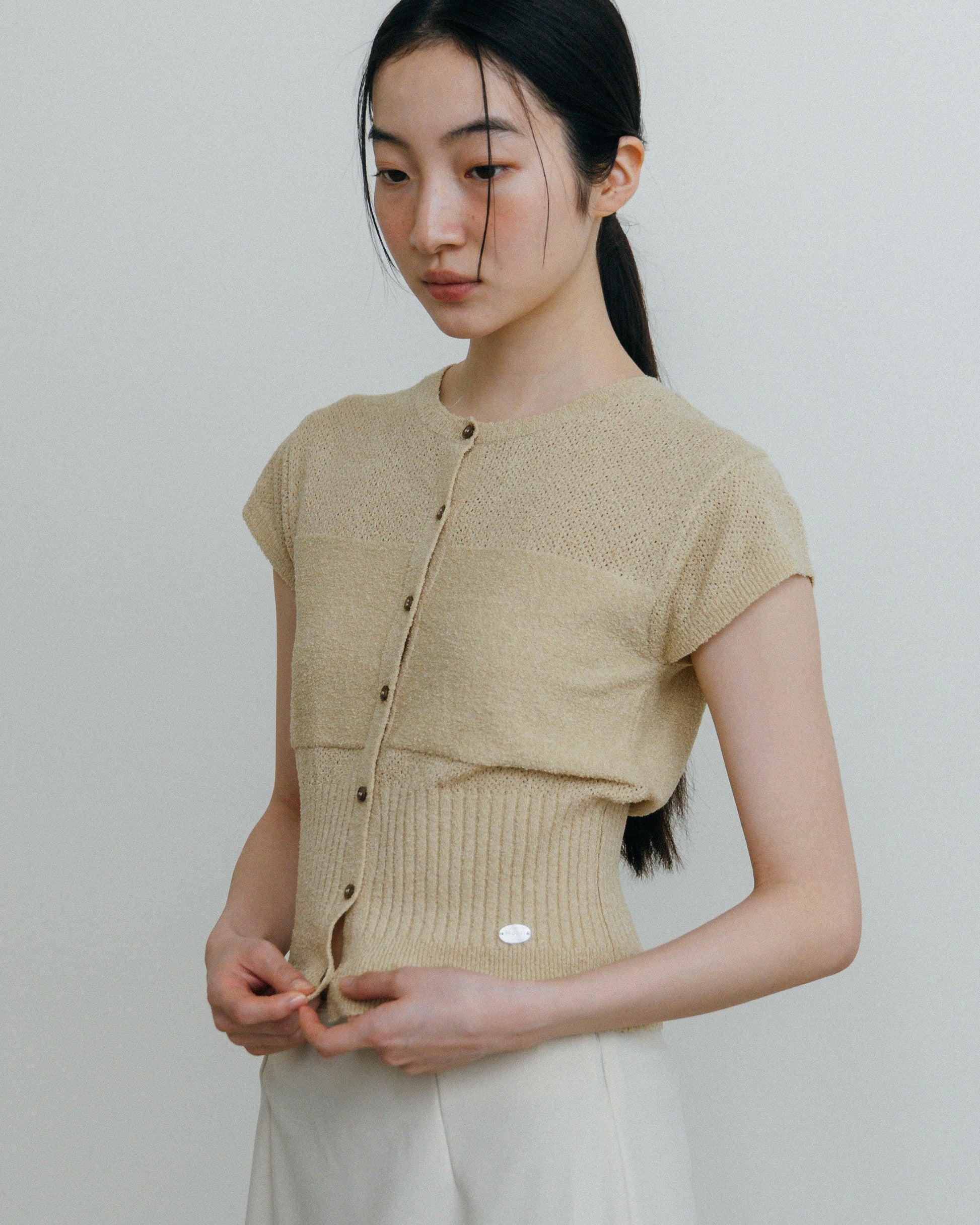 フロントボタンがアクセントの、立体感のあるニットトップス。