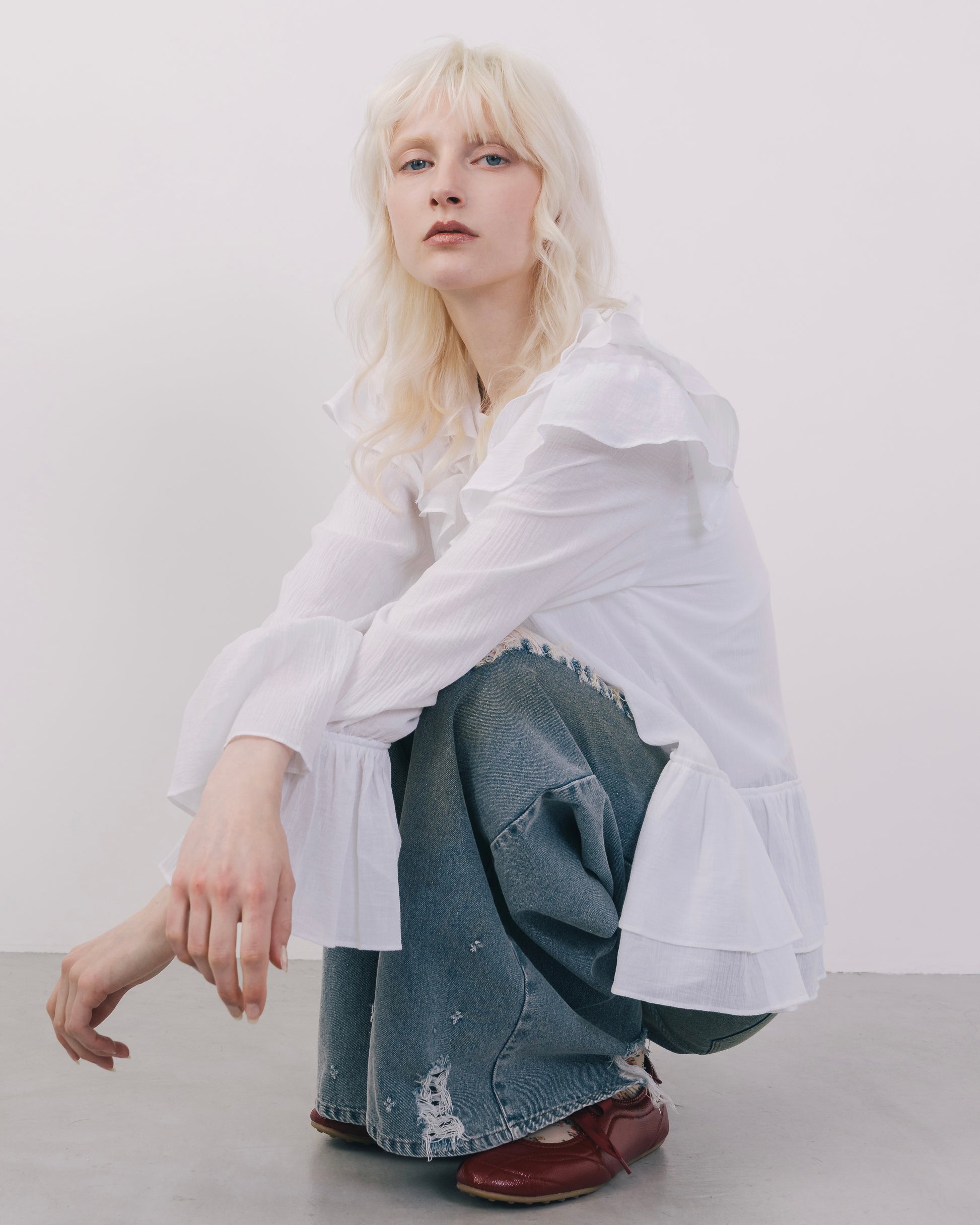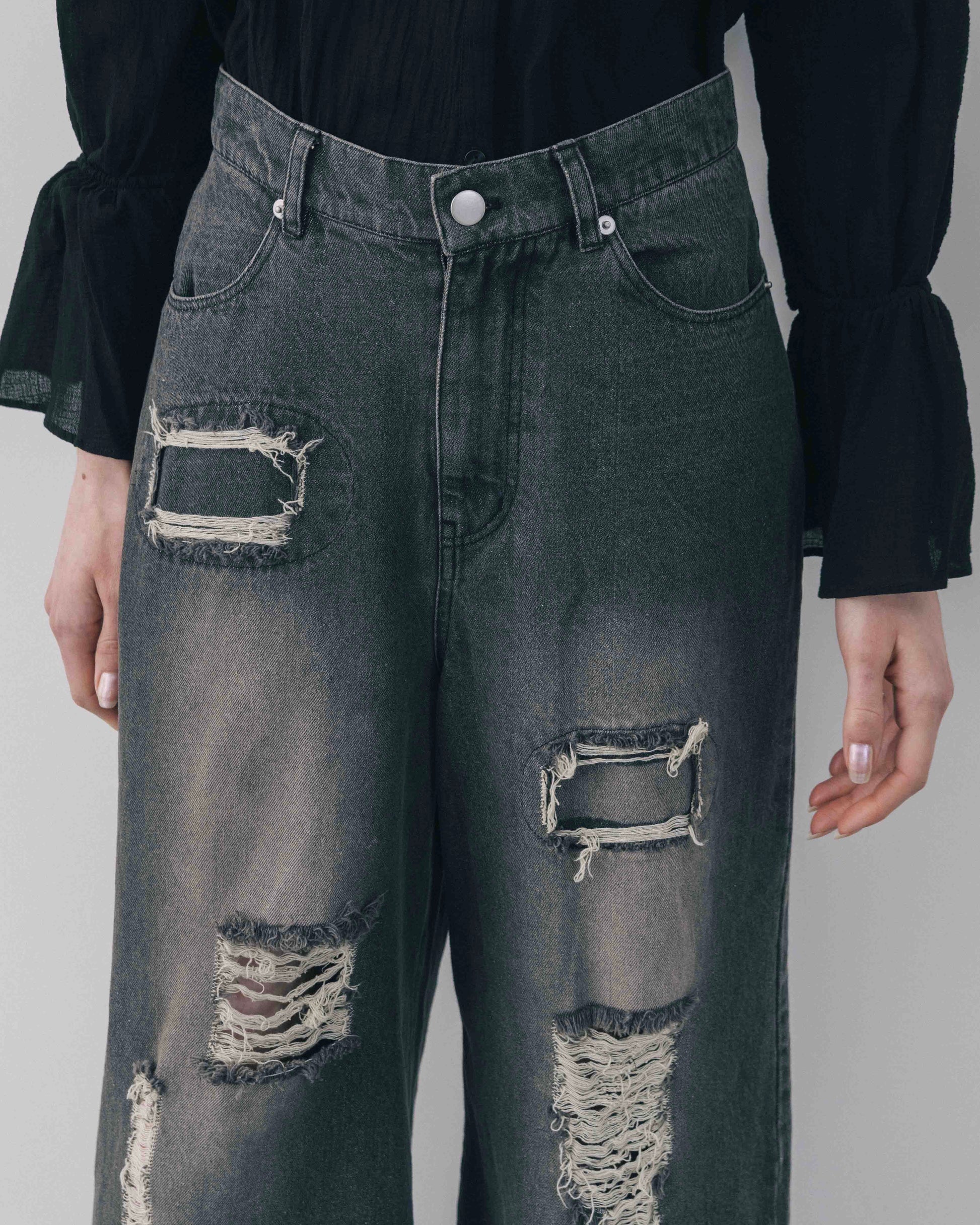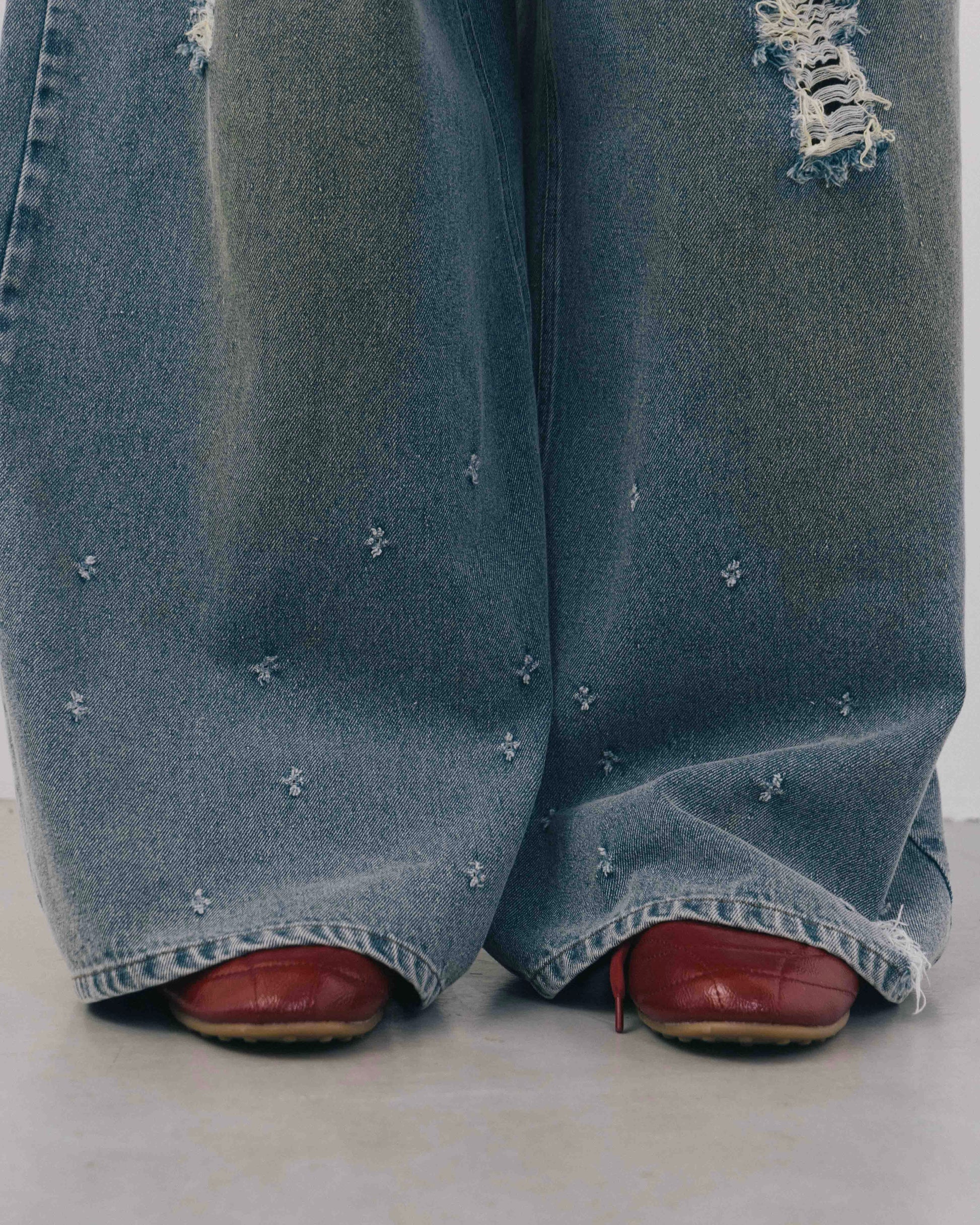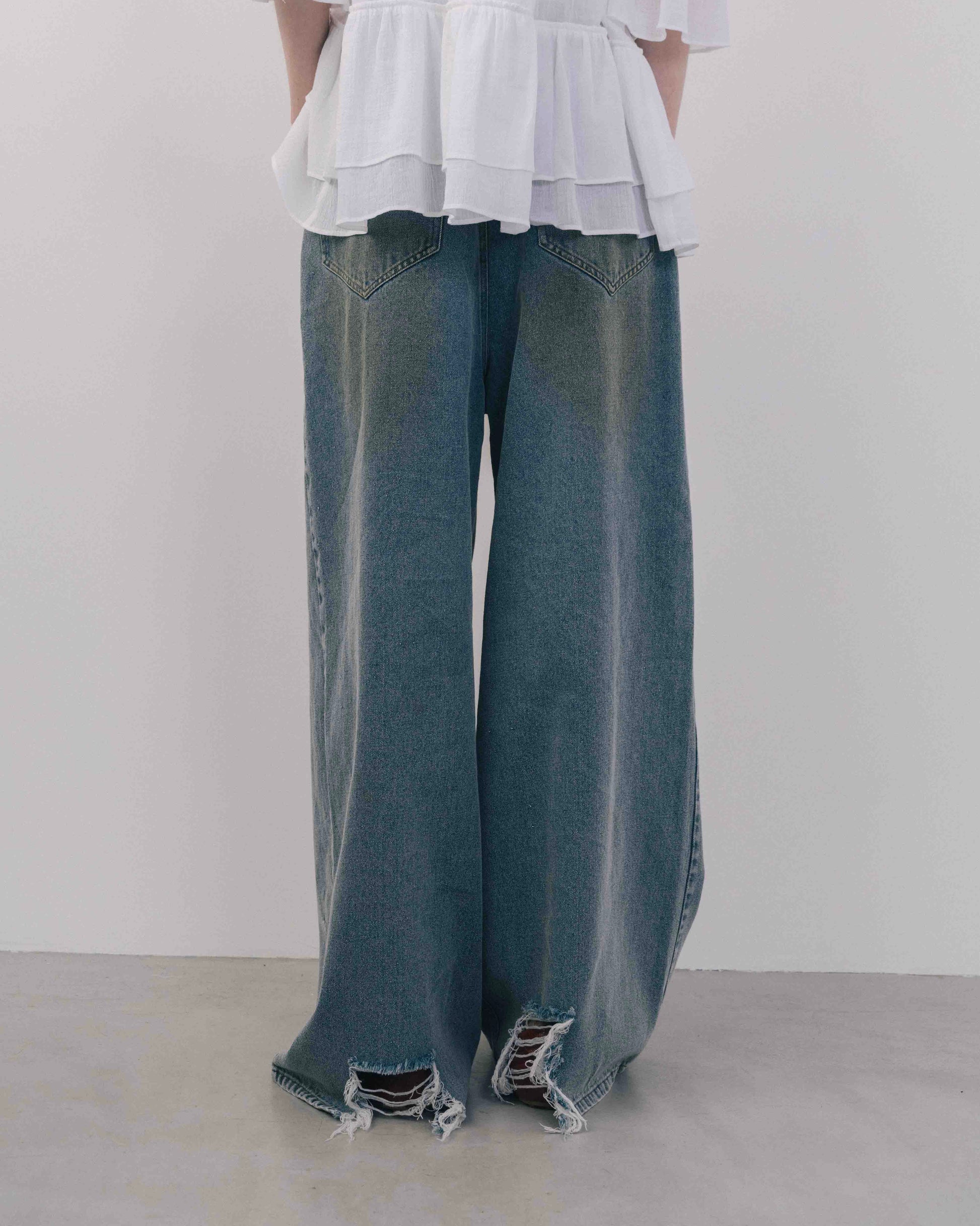 Wide Silhouette Distressed Denim